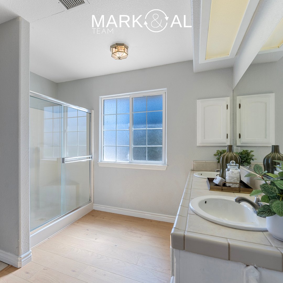 The primary suite offers a peaceful retreat with a large walk-in closet and a private ensuite bath featuring dual sinks. Two additional bedrooms are well-sized, while the bonus office provides flexibility for use as a home workspace, guest room, or potential fourth bedroom.
