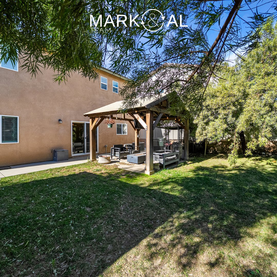 Outdoor living is a standout feature of this property. The backyard is designed for year-round enjoyment, complete with a large covered patio gazebo, ceiling fan, and decorative lighting—perfect for hosting gatherings or relaxing in comfort.