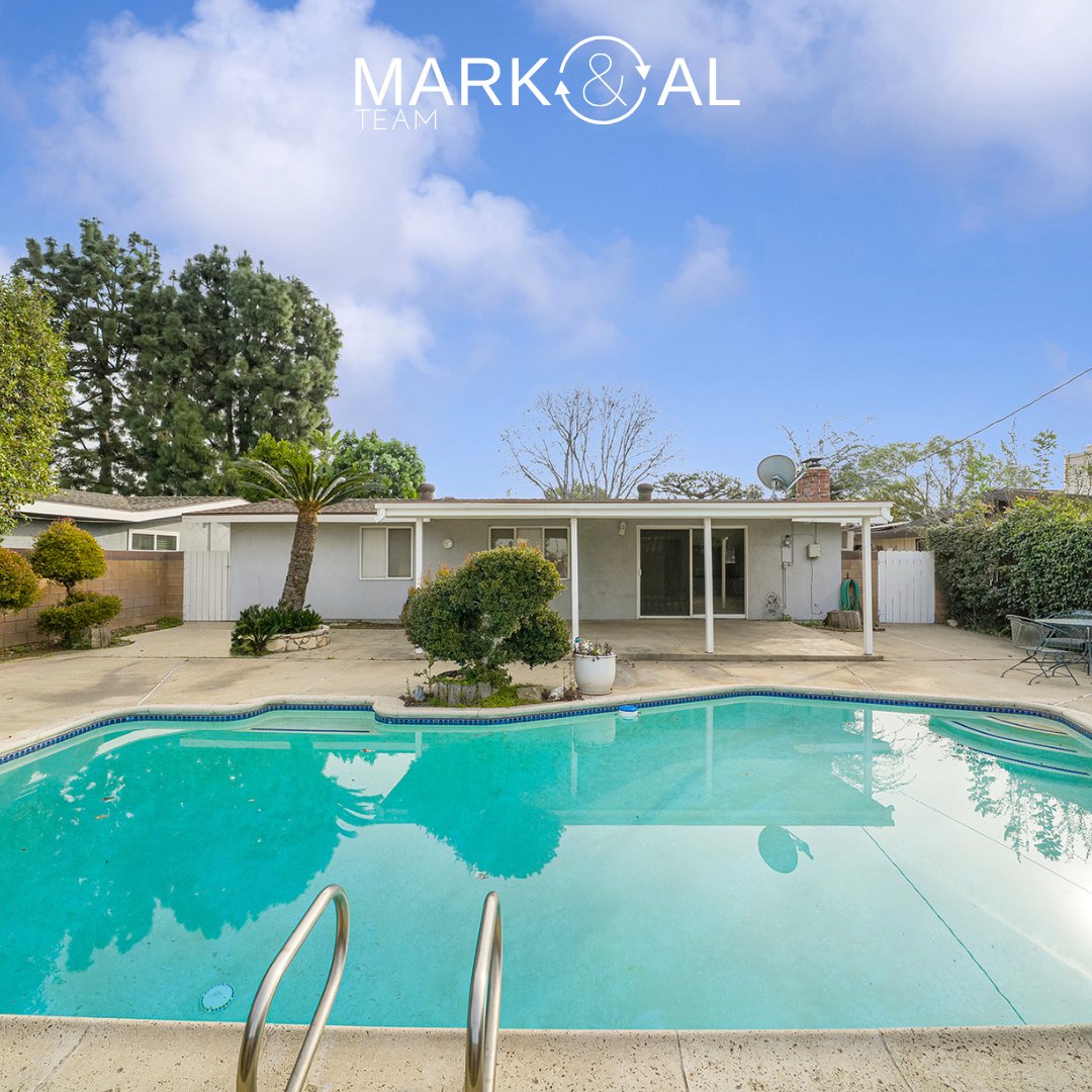 The private backyard is ideal for both relaxation and entertaining, featuring a sparkling swimming pool and a covered patio. Whether hosting gatherings or enjoying quiet afternoons, the outdoor space offers year-round enjoyment.